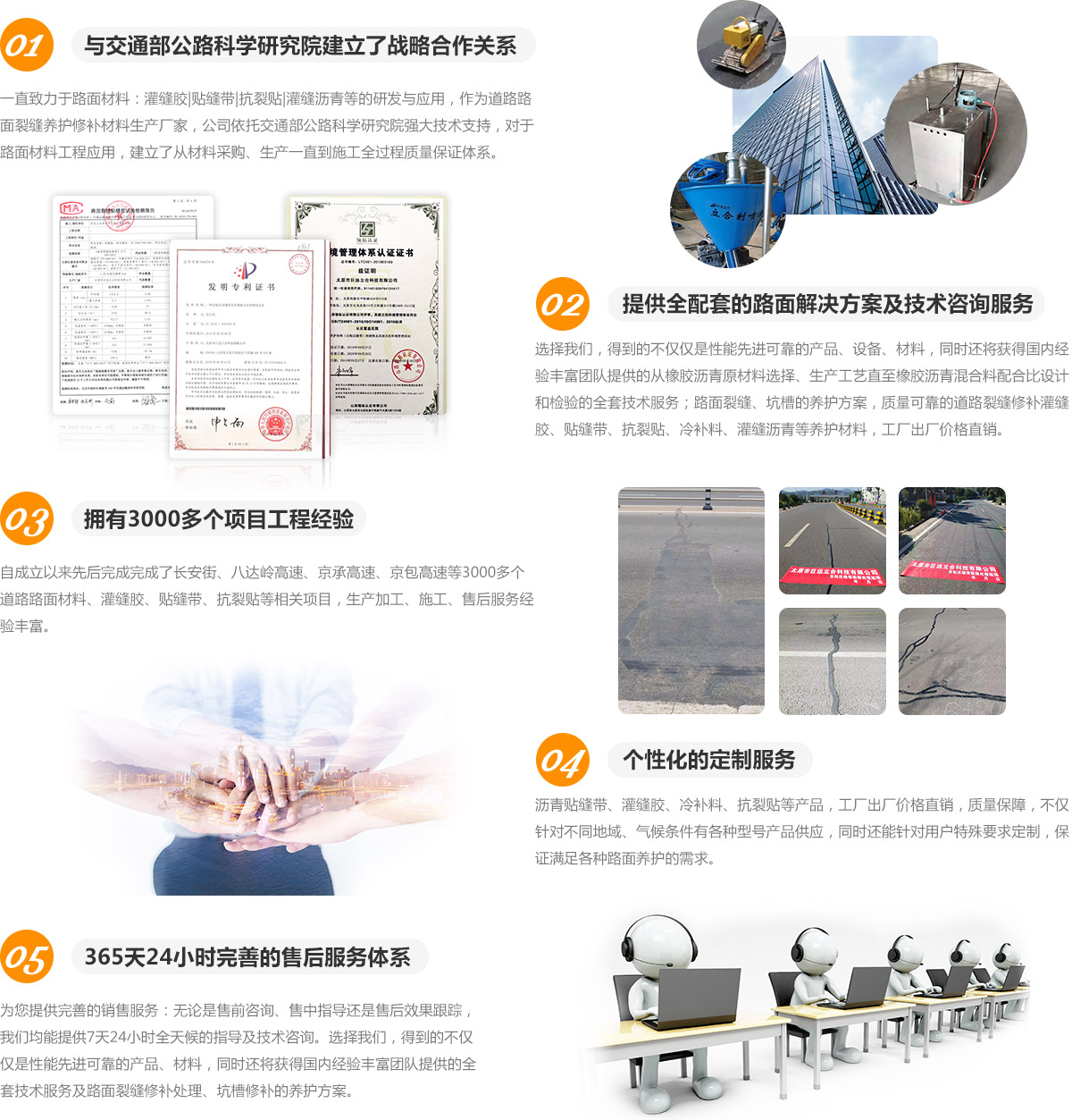 巨遠立合技術(北京)有限公司成立于2009年,是一家集新材料研發(fā)、生產、推廣于一體的現代高新技術企業(yè)。多年來,巨遠立合一直專注于道路預防性養(yǎng)護領域,持續(xù)加大研發(fā)投入,擁有了多項自主知識產權的專利技術和著作權,其中取得國家發(fā)明專利的“L-ZN自粘壓縫帶”在2011年由科技部評為“國內技術領先”的科技成果。目前該產品已廣泛應用于全國16個省的高速公路、國道、省道及縣鄉(xiāng)道路。巨遠立合也成為自粘壓縫帶產品開發(fā)最早、生產規(guī)模和銷售規(guī)模最大的企業(yè)。
